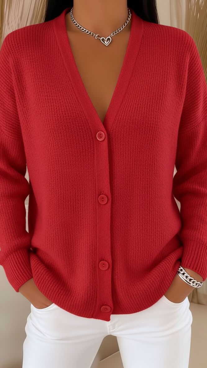 קרדיגן קז'ואל לנשים בצבע אחיד עם צווארון V