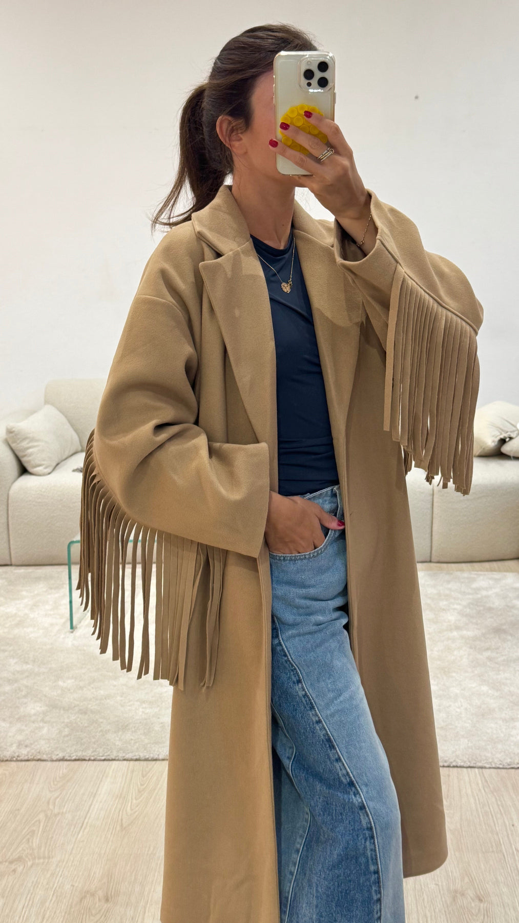 מעיל זה תוכנן לעבור את העונות מבלי לאבד את האלגנטיות שלו. הגזרה הקלאסית, מעט צמודה, מדגישה את הסילואטה תוך שמירה על נוחות. בין אם את לובשת אותו במשרד, בערב או ליציאה לא פורמלית, הוא תמיד מוסיף נגיעה שיקית למראה שלך.